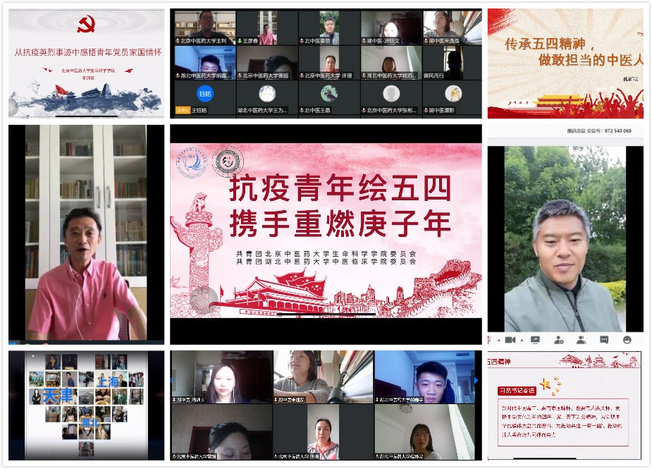 随后来自两校的学生代表分享了他们在疫情期间的温暖的抗疫故事。故事中,有同学们在抗疫一线协助医生们积极开展后勤保障工作的点滴努力,有虽然远隔千里但心系湖北、用行动写下爱心募捐背后的感人故事,有扎根社区全身心投入基层志愿服务的爱心故事,有结合疫情线上开展丰富多彩学生活动的温暖瞬间。同学们深入交流着心目中的中医药人与五四精神,以及对在本次疫情中开展志愿服务工作刻骨铭心的体会,更有我们青年党员的家国情怀。