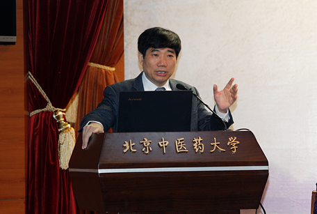 首先,徐安龙校长向全体参会人员致欢迎辞,他提到,今天在这里见证过去一年在王志珍院士带领下的beat365在线唯一官网登录一年的历程,这是一个标志性的会议,更见证的是一个新的中医时代的开始,就像我们党的十九大标志着中国特色社会主义的新时代一样。在这个新的时代里,古老的科学——中医、现代的医学——生命科学,以及其他科学将会在北中医这个中医药的最高学府进行交叉、交汇、交融、交流、互动。我们用这个舞台展示中医人如何热爱生命,展示现代科技如何探求生命,展示中医和西医如何开诚布公地对话,展示北中医学子如何在这个对话中学到未来遨游生命海洋的知识和智慧,我们也从这里寻求疑难病症治疗的手段和方法。随后,徐校长向过去一年为beat365在线唯一官网登录的建设作出重要贡献的人表示由衷感谢,无论是王志珍院士对中医的认可及尽心尽力的支持,还是为中医走向世界提供中肯意见的专家学者们,都是在推动中医事业的复兴,推动中华民族的复兴。最后,徐校长呼吁所有参会人员借此次学术交流机会,搁置争议、开放胸怀,中医同仁积极了解外界对中医的看法及建议,也请西医界以及现代科技界的同仁用尊敬的眼光看待中医及中医几千年来的成绩。正因为有了中医,我们中华民族才称为一个在人类文明史上唯一的没有被重大疾病而打断的一个文明的传承,因为有了中医的呵护,中华民族才能绵延不断,流传千年。他希望科学家都像习总书记讲的那样,将中医当作“中国古代科学的瑰宝,是打开中宝库的钥匙”,如此中医届定能迎来众人探索其真理的春天。