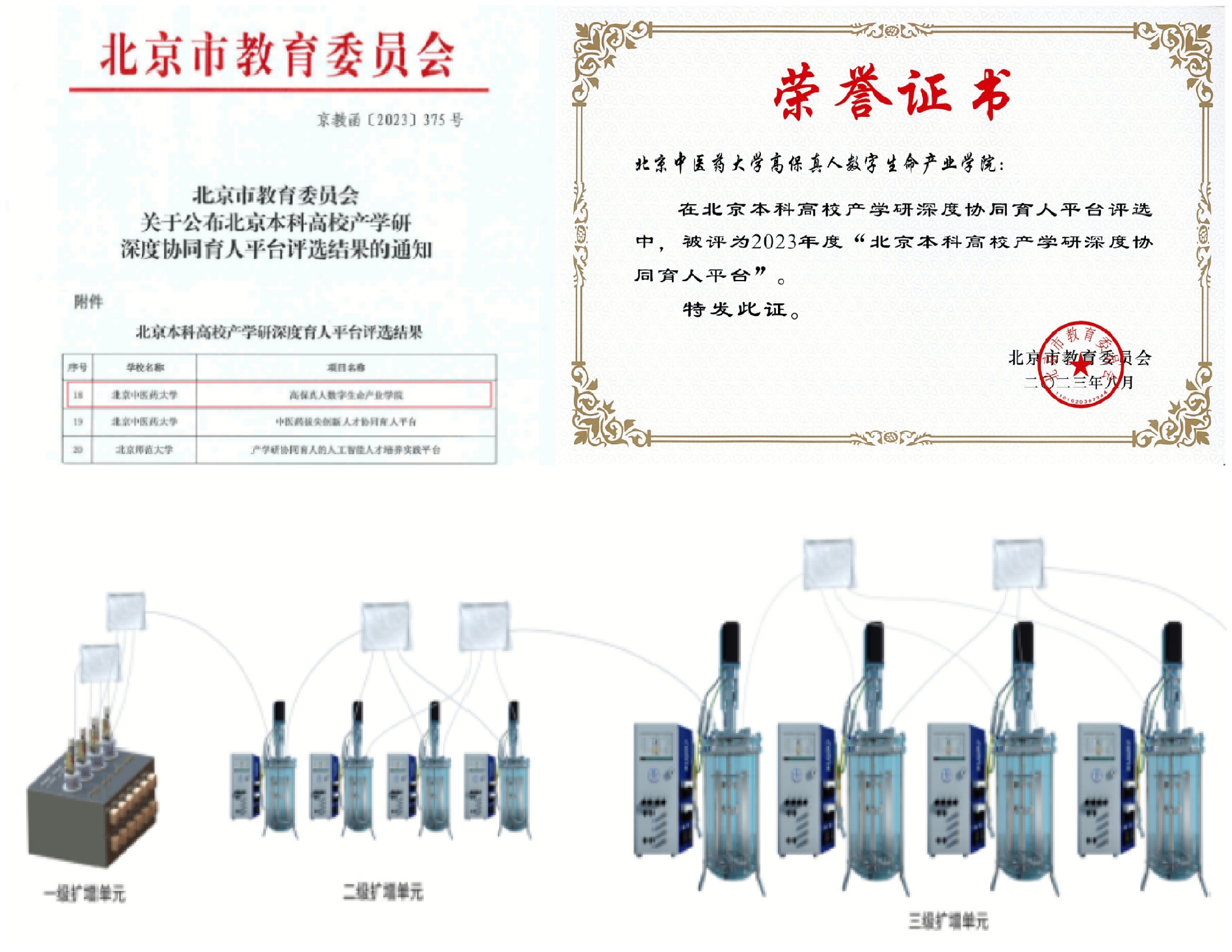 牢固树立问题意识、目标意识,搭平台、重改革。聚焦于标志性产品国产化替代以及产业链“卡脖子”技术的攻关和原始创新,徐安龙教授、闫聪教授牵头的“高保真人工程平台”、“中医PET-CT工程平台”获国家医学攻关产教融合创新平台项目国拨资助逾亿元。启动中医再生医学联合创新平台建设,自主构建出多尺度、平行阵列式智能仿生细胞扩增培养技术平台,努力解决创新药研发过程中的“卡脖子”关键技术,填补国家重大科技基础设施在中医药领域的空白,打破国外供应商对我国医疗器械领域的垄断,突破性解决当前我国细胞科学与工程技术领域的高端科学仪器对国外的严重依赖的问题,而且有效整合大数据、人工智能、区块链、隐私计算等前沿信息化技术,与细胞生物技术形成深度融合,为中医药现代化奠定坚实的科学基础,同时为中医药产业化奠定坚实的物质基础。高保真人工程平台获评北京本科高校产学研深度协同育人平台,通过平台的搭建,构建以高校为引领、企业作支撑的产教融合一体的新模式,助推教学质量再上新台阶。