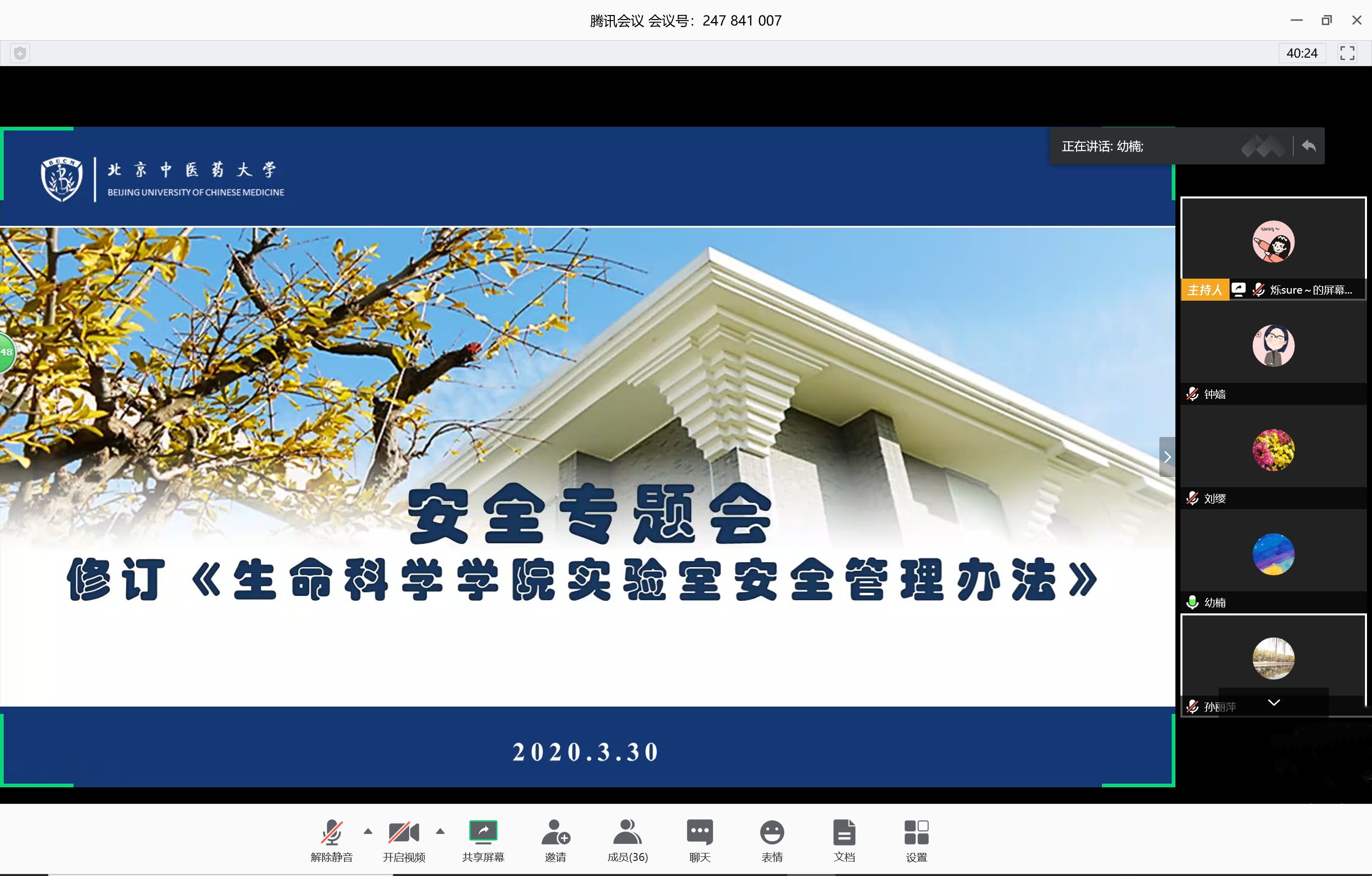 陈幼楠副院长首先对新修订的《beat365在线唯一官网登录实验室安全管理办法》进行了宣讲,强调了制度执行的力度与时效,并对有关奖惩办法进行了说明。潘彦舒主任针对安全管理各层级文件进行了政策解读,并对学院的实验室安全管理办法修订给出了具体指导意见。