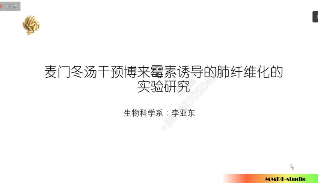 李亚东副教授作了题为《麦门冬汤干预博来霉素诱导的肺纤维化的实验研究》的报告,介绍了间质性肺疾病的研究背景及特发性肺纤维化的病理过程,临床诊断的主要标准和次要标准,肺通气功能障碍的相关检测,肺纤维化与中医疾病肺痿的关系,肺纤维化疾病动物模型的造模及干预方法,运用麦门冬汤干预肺纤维化大鼠模型的肺功能研究。