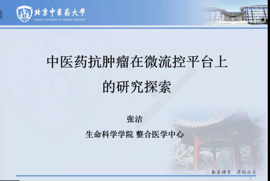 张洁老师作了题为《中医药抗肿瘤在微流控平台上的研究探索》报告。微流控芯片是指在芯片上集成或基本集成化学和生物等领域中涉及的样品制备、反应、分离、检测等基本操作单元,以微通道形成网络,贯穿整个系统,用以取代常规化学和生物实验室各种功能的一种技术平台。介绍了微流控芯片在细胞培养上的实验方法,尤其是在肿瘤模型上的具体应用。