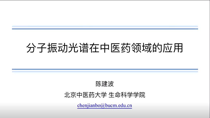 陈建波老师作了题为《分子振动光谱在中医药领域的应用》的报告。首先简要介绍了光谱及分子光谱、拉曼光谱、红外光谱与拉曼光谱的互补关系;展示了振动光谱测量仪器并介绍振动光谱技术特点、时间分辨振动光谱、空间分辨振动光谱、振动光谱联用技术、分子振动光谱方法特点与应用;结合分子振动光谱与中药化学形貌表征、生物组织成分表征、临床样本快速检测等在中医药领域中的应用。