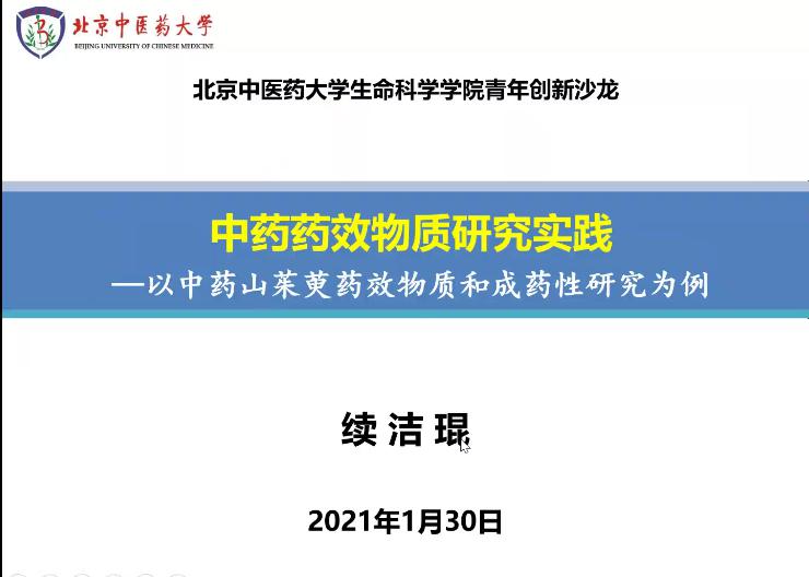 续洁琨老师作了主题为《中药药效物质研究实践—以中药山茱萸药效物质和成药性研究为例》的报告,首先在研究背景中肯定基于中药创新药物的研究具有明显优势,聚焦山茱萸组方治疗抑郁症有长期的历史和确切疗效,对山茱萸的产区进行调研工作。展示了山茱萸化学成分研究、抑郁症的流行病学研究、抑郁症治疗药物的发展历史及现状、中药防治抑郁症的疗效、洛安宁抗抑郁药效学研究及作用机制等方面的研究成果。