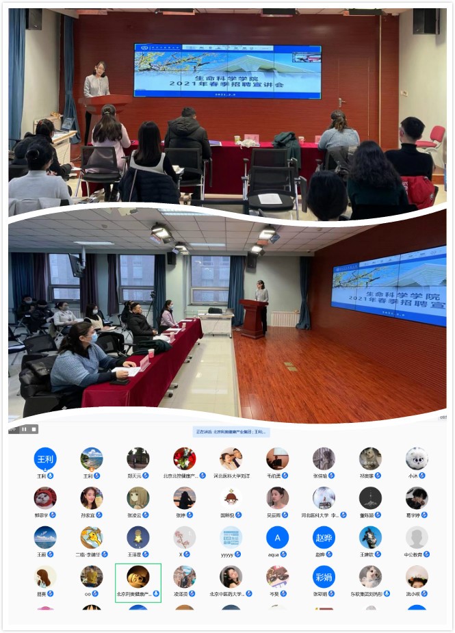 活动面向全校学生开展,采用线上、线下相结合的模式,以充分满足在校与未返校学生的需要。此次线上招聘暨宣讲会参与企业21家,涉及高等院校、医疗机构、生物医药、信息技术、大健康产业、教育培训、医药相关建筑安装等多个行业。