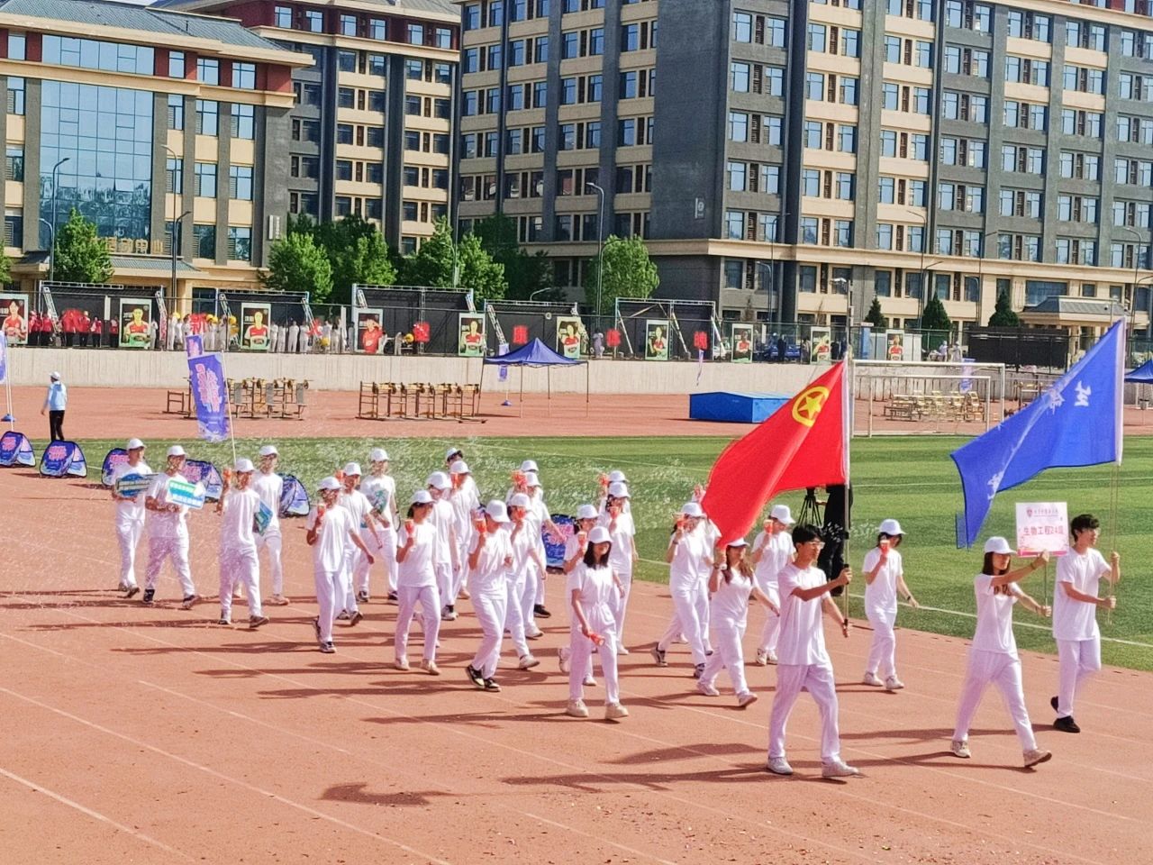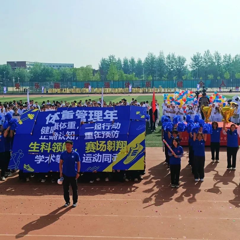 研究生方阵意气风发地走来。他们目光坚定,眼神中透着对知识的渴望和对挑战的无畏;脸上洋溢着自信的笑容,那是青春独有的朝气。在科研的漫漫征途中,他们严谨治学、勇于创新,在学术的海洋里不断探索;而在运动场上,他们同样团结一心、奋勇争先。他们以“体重管理年”为主题,响亮地喊出口号:“健康体重,一起行动;正确认知,重在预防;生科领航,赛场翱翔;学术攀登,运动同行!”。