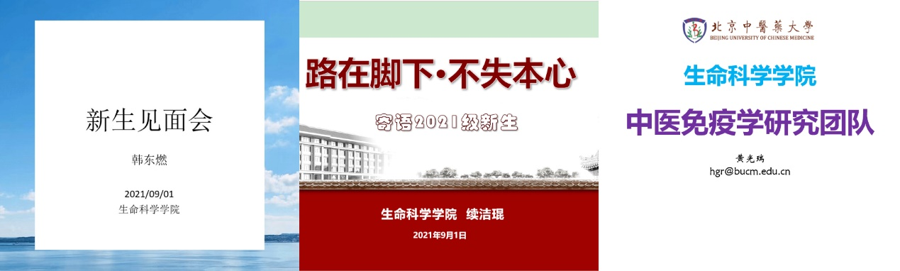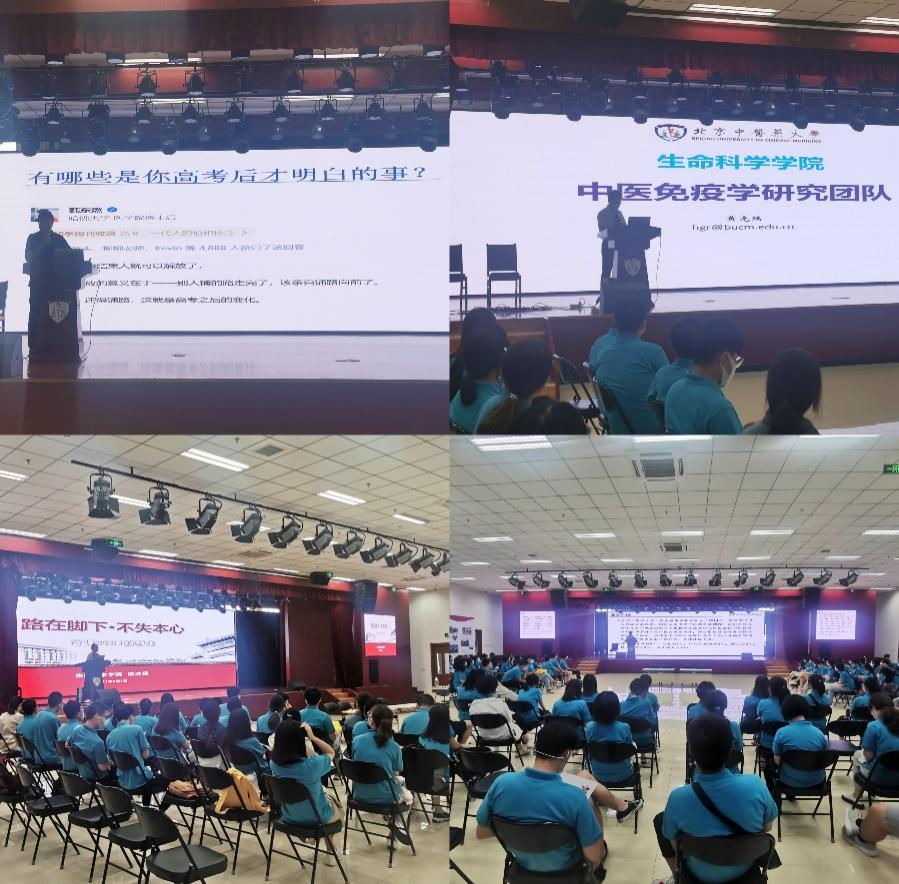 第二阶段为“导师见面会”。在同学们科研、学业的道路上,离不开本科学术导师、研究生导师的带领。学院邀请了韩东燃、续洁琨、黄光瑞三位优秀导师代表分别做了题目为《新生见面会》、《路在脚下不失本心》、《中医免疫学研究团队》的分享。