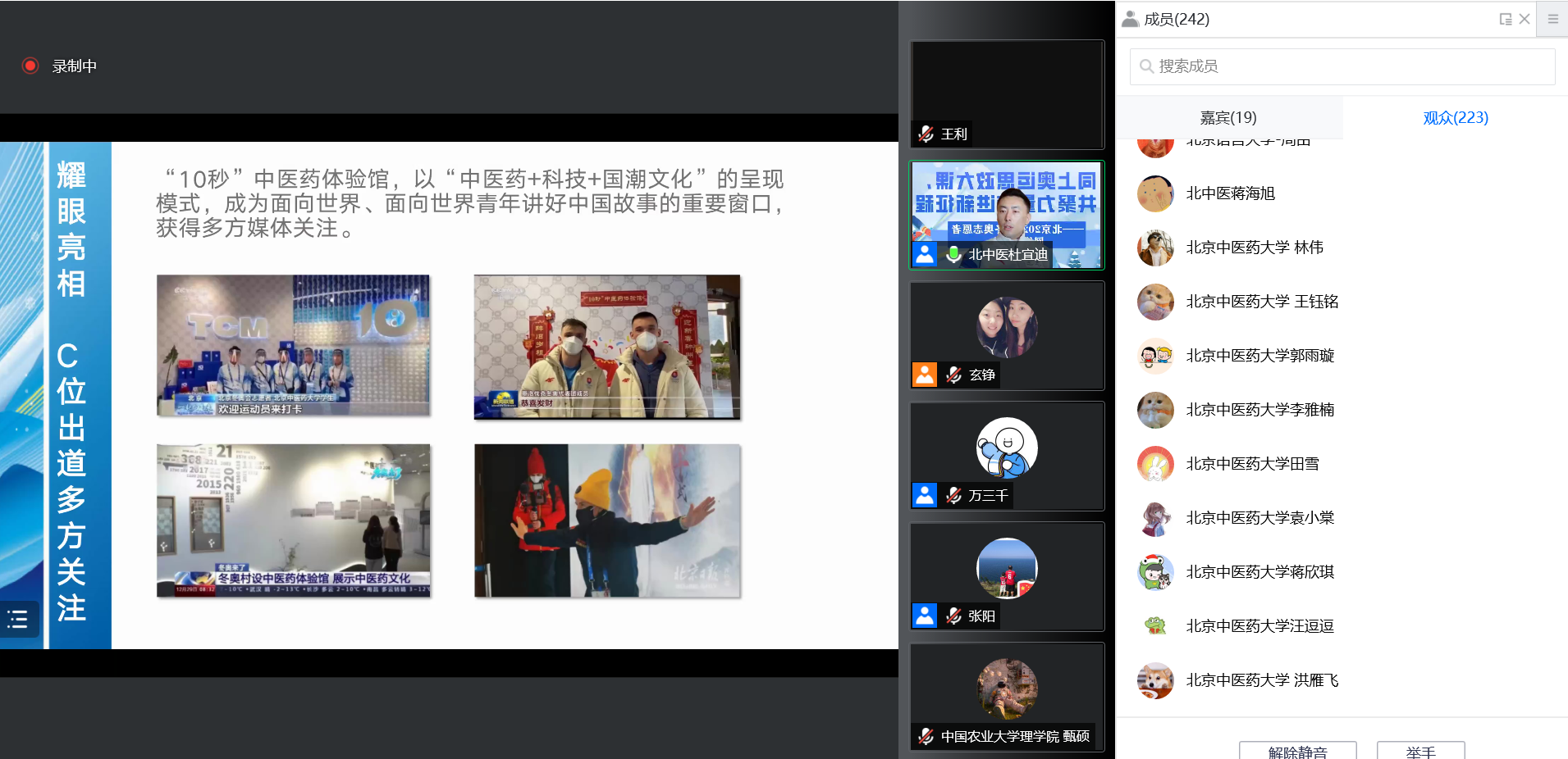 来自管理学院的杜宜迪同学向大家介绍了成为志愿者的初心与冬奥会志愿者服务期间的感动;中医学院的胡聿昕同学以“在经历中学习,在变化中成长”为题介绍了其在冬奥村为大家开展中医药服务的点滴与自己成长的心路历程。来自兄弟院校的10余名志愿者分别从不同视角介绍了自己服务冬奥的收获与感动。