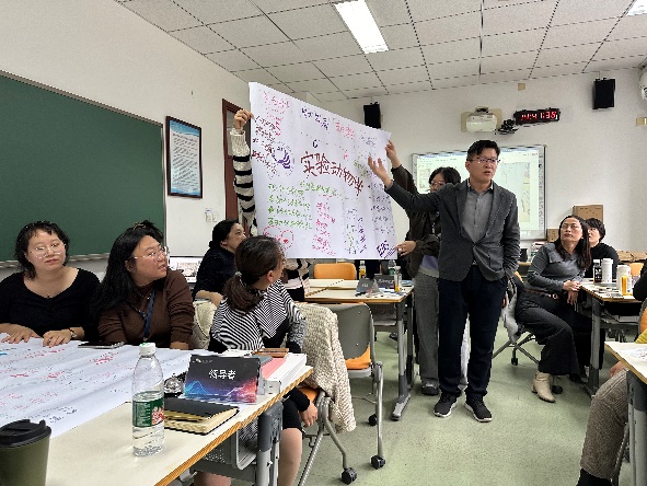 随后,参会教师被随机分成四个小组,每个小组在明确的角色定位下,共同参与了“课程知识图谱”的搭建工作。活动分为“课程概要设计”、“课程知识地图”、“课程知识图谱样例制作及单个知识点设计”、“课程问题图谱制作及展示”四个环节。通过思想碰撞和深入交流,教师们对基于知识图谱的数智化课程建设有了更深入的了解,各组形成了多个富有创意的智慧课程设计构想并分享了各自的心得体会。